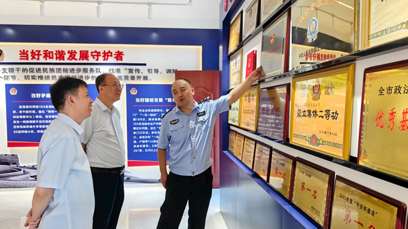慰问组一行来到磨头派出所,在民警的引导下,首先参观了派出所文化长廊与荣誉展厅,详细了解了磨头派出所历史沿革与取得荣誉。