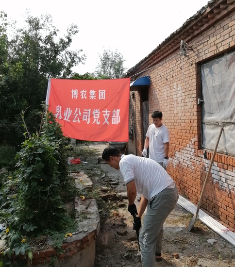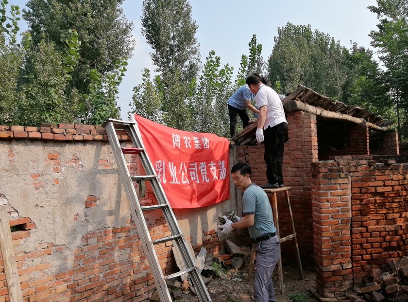贫困户魏泽美家是博农乳业公司对口扶贫帮扶户,公司党支部了解到魏泽美家中厕所年久失修,给其生活造成不便的实际情况,经过研究,决定发挥公司支部党员水电、建筑等人才优势,组织党员直接参与其厕所整修工作。30日下午,乳业公司党员12人克服天气炎热、工作环境条件复杂的多重困难,全身心投入到厕所整修工作中,有的撤除房顶,有的焊接梁架,有的开挖水沟,有的连接电路,用整整一下午时间,完成了房顶撤除更换、连通水电的任务,帮扶工作受到贫困户魏泽美的交口称赞。